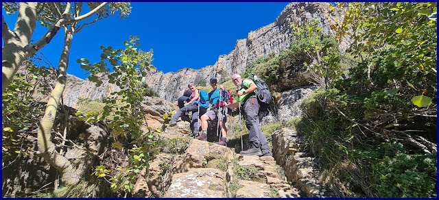 El estrecho sendero de la faja nos lleva a pasar bajo esta mole rocosa, espectacular.....