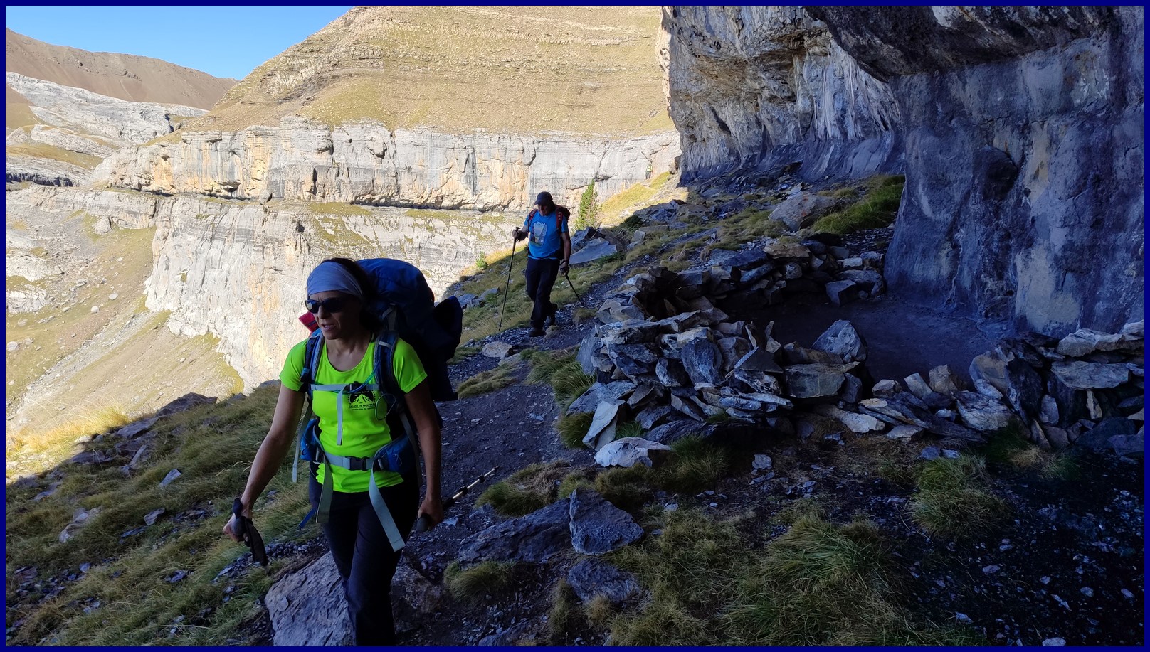 Ya estamos todos, pues ahora descendemos en dirección este para enlazar con la Senda de la Brecha de Rolando, que nos llevará hasta el refugio de Góriz