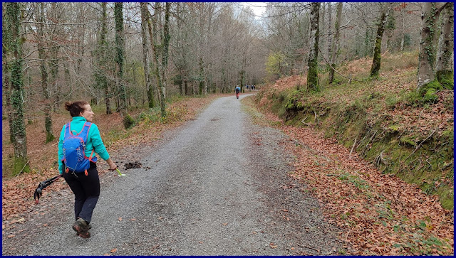 La pista continúa en suave ascenso, mientras el pinar da paso a las hayas